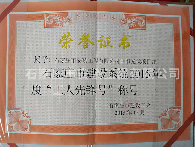 石家莊市建設(shè)系統(tǒng)2015年度“工人先鋒號(hào)”稱號(hào)